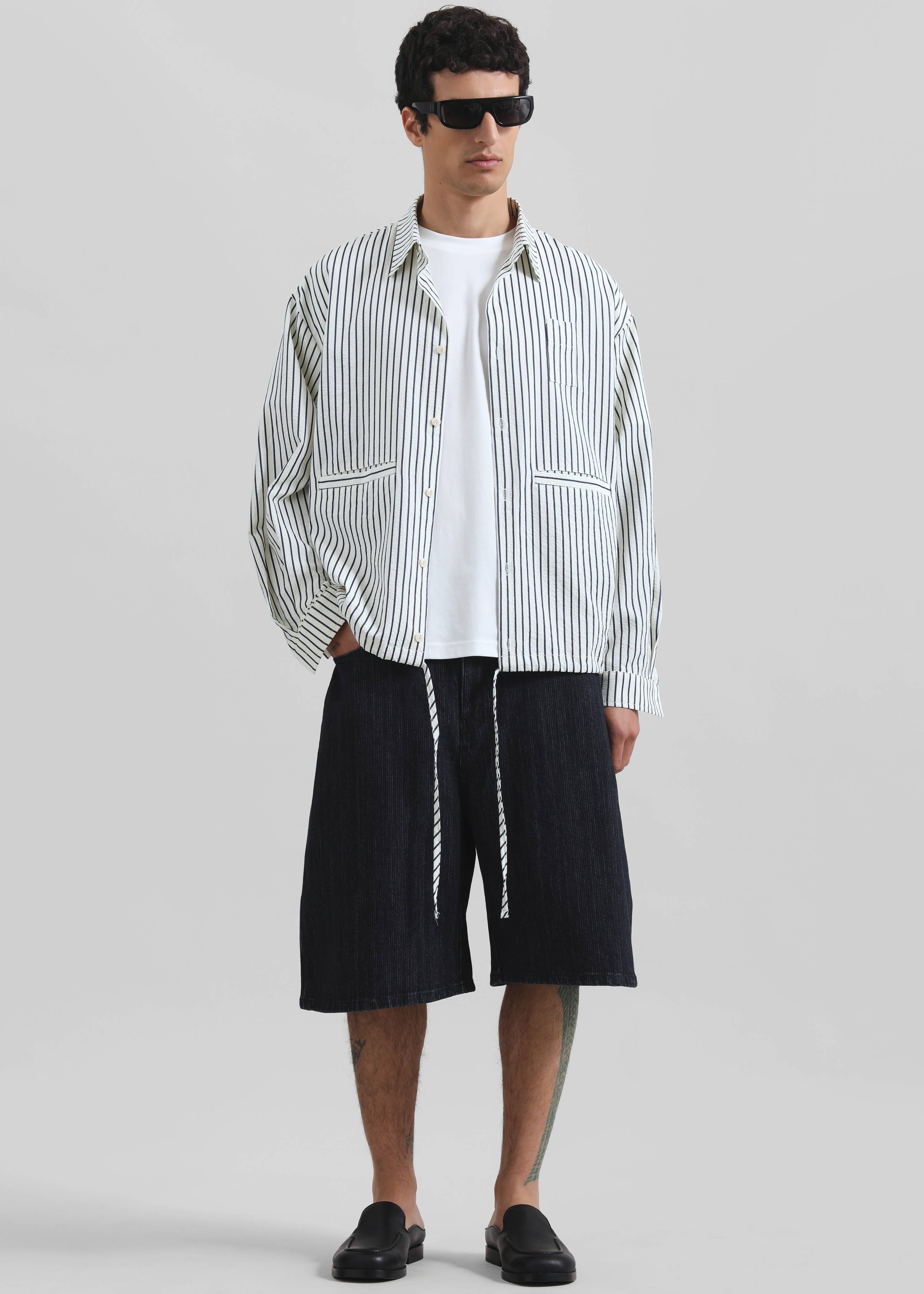 Corwin Shirt Jacket - White/Navy Stripe