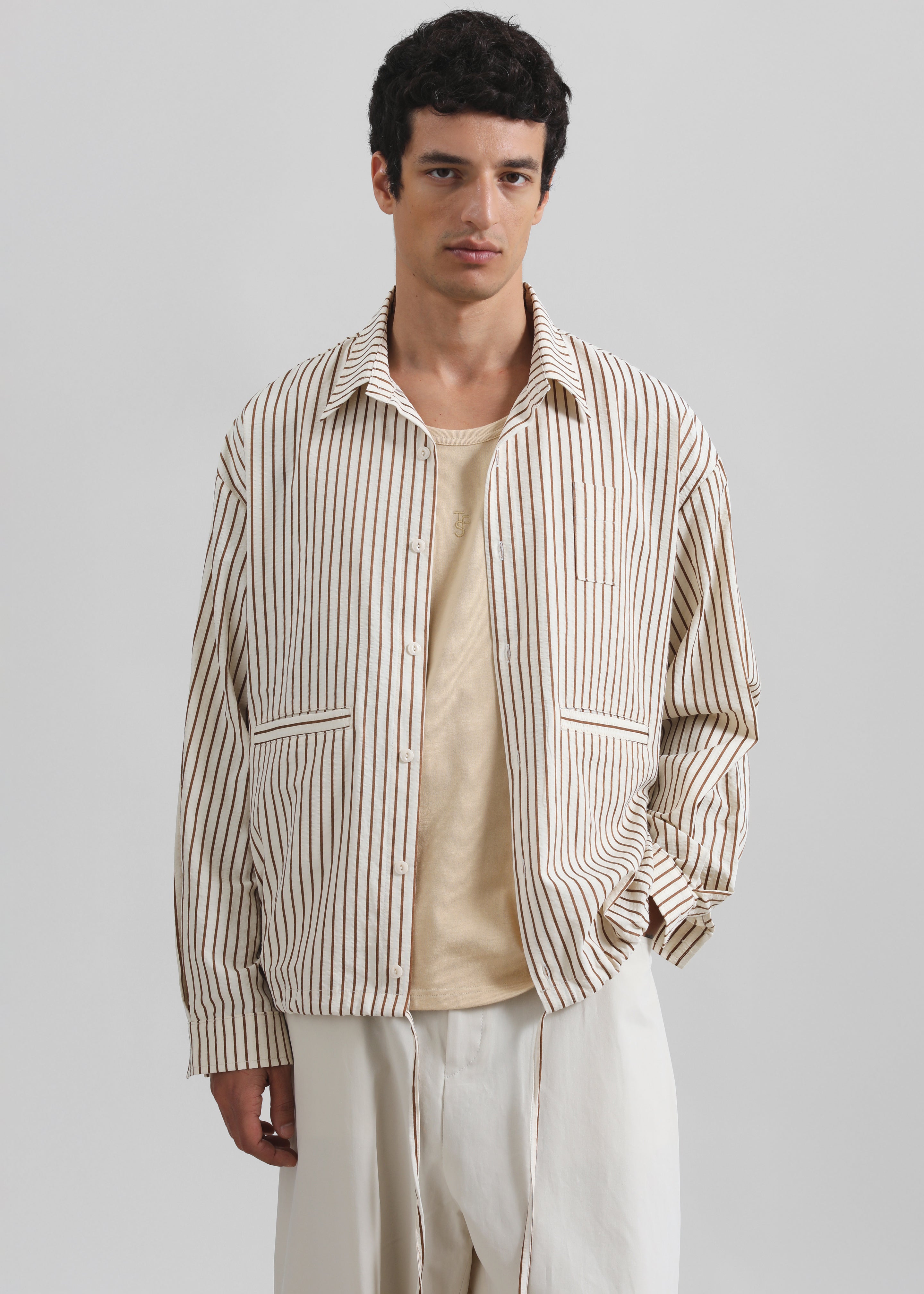 Corwin Shirt Jacket - Beige/Brown Stripe